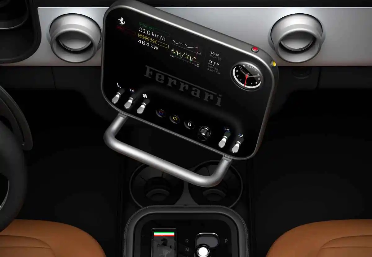 Para este proyecto, Ferrari se asoció con LoveFrom, el colectivo creativo liderado por Sir Jony Ive, responsable de algunos de los productos más icónicos de Apple. El resultado es un habitáculo que apuesta por la claridad visual, la interacción intuitiva y el uso de materiales nobles como aluminio reciclado y cristal de alta resistencia. La filosofía es clara: menos pantallas invasivas y más controles físicos con respuesta real.